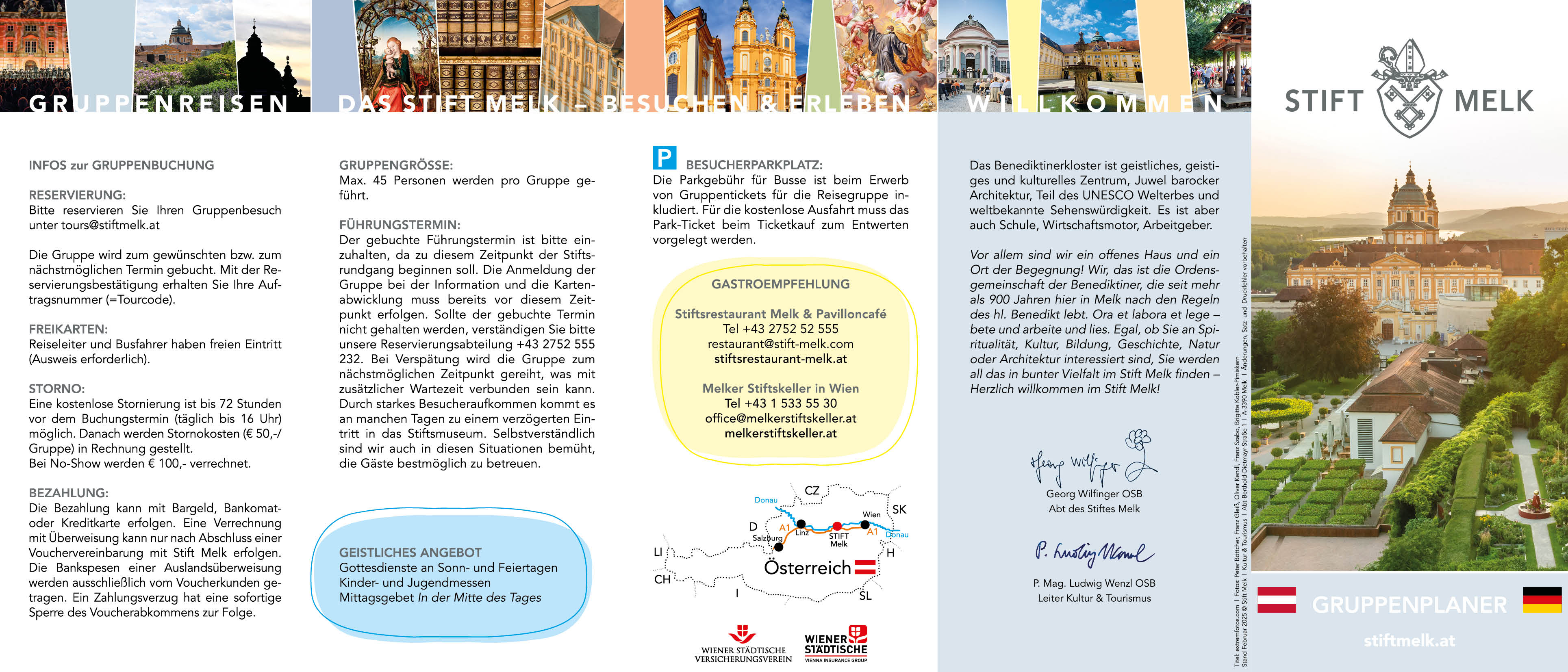 Bitte reservieren Sie Ihren Gruppenbesuch schriftlich per Mail an tours(at)stiftmelk.at oder per Fax +43 2752 555 249.